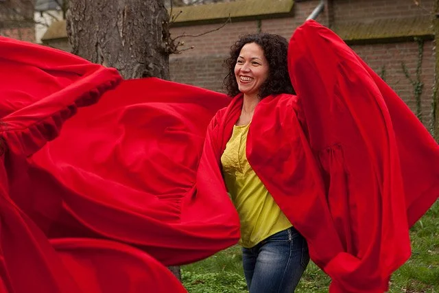 Anne ontving ons in haar prachtig rood gedecoreerde woonkamer. Ze had een altaar gecreëerd met bloemen, kaarsen, stenen, heerlijke geuren, warme olie om te masseren en materialen om creatief bezig te zijn; we gingen alle 3 AAN! Na verbindende ontmoetingen verplaatsten we ons, gehuld in rode doeken, naar een nabij gelegen tuin waar we ons vrij gingen bewegen en al dansend tussen de bomen was het een magisch en unieke beleving!